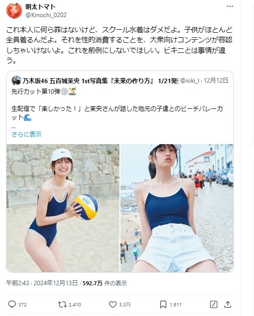 【悲報】乃木坂46五百城茉央さんの写真集が「スクール水着の性的消費」だとしてバズりまくってしまう・・・ 2024年12月14日 最終更新日時 : 2024年12月14日 FAVガールアンテナ フジの深夜番組さん、変態コスプレと生腋が見放題だった 「モーニング娘。’25 コンサートツアー春 〜Mighty Magic〜」グッズのご紹介!! 安達祐実、透け乳首が抜ける!おっぱいヌードがエロくてたまらんwwwwwww 若林有子アナ、白ニットおっぱいデッカ!プルプル揺れる乳房シコ G 譜久村聖 151-160 グラビア・水着画像 モーニング娘。’25春ツアーのステージセットキタ━━━━(゚∀゚)━━━━!! ひなフェス2025抽選会結果キタ━━━━(゚∀゚)━━━━!! 今井春花アナ、ブラ丸見えの肉肉しいおっぱい!しかしデカいな 【画像】乃木坂46・井上和さん(20)、とうとう下半身ショット解禁wwwww 石山咲良をおんぶしながら会場に入場する有澤一華【ひなフェス抽選会】 【悲報】乃木坂46五百城茉央さんの写真集が「スクール水着の性的消費」だとしてバズりまくってしまう・・・ 1: 名無し48さん 警備員[Lv.43][苗] (4段) 2024/12/14(土) 15:31:13.62 これはいかんでしょ VIPQ2_EXTDAT: none:none:1000:512:donguri=0/4: EXT was configured 乃木坂46 五百城茉央1st写真集「未来の作り方」 五百城茉央 小学館 2025-01-21 続きを読む 続きを見る フジの深夜番組さん、変態コスプレと生腋が見放題だった 「モーニング娘。’25 コンサートツアー春 〜Mighty Magic〜」グッズのご紹介!! 安達祐実、透け乳首が抜ける!おっぱいヌードがエロくてたまらんwwwwwww 若林有子アナ、白ニットおっぱいデッカ!プルプル揺れる乳房シコ G 譜久村聖 151-160 グラビア・水着画像 モーニング娘。’25春ツアーのステージセットキタ━━━━(゚∀゚)━━━━!! ひなフェス2025抽選会結果キタ━━━━(゚∀゚)━━━━!! 今井春花アナ、ブラ丸見えの肉肉しいおっぱい!しかしデカいな 関連記事 関連記事はありません。